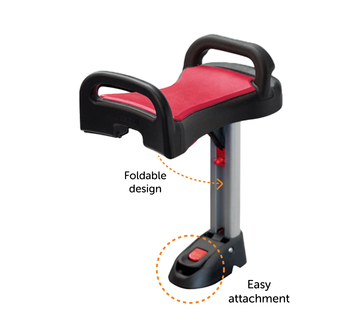 When not in use, the saddle folds neatly out of the way, allowing your child the freedom to stand without obstruction.